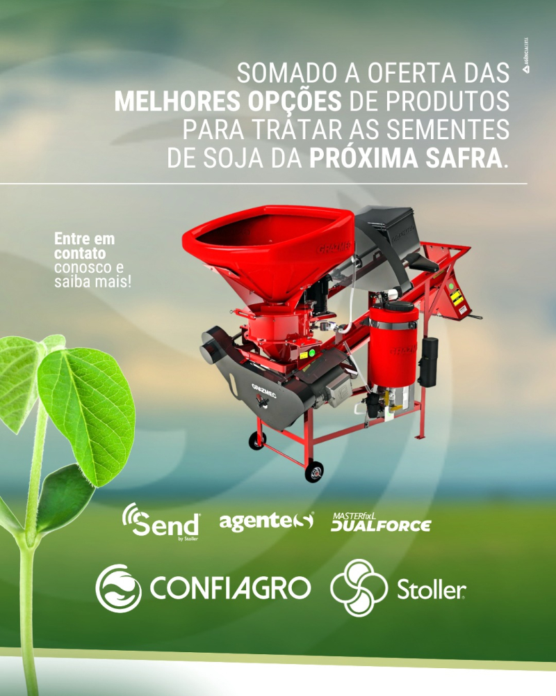 E a Confiagro, junto com a Stoller tem uma tecnologia fisiológica de mecanismo de ação única no mercado, o agente S (base de aminas e poliaminas), que proporciona todo o estímulo na fase inicial. Associado ao fornecimento adequado e equilibrado de Cobalto e Molibdênio, para a nutrição e funcionamento dos nódulos formados por Bradyrizhobium, além do Send, que proporciona manejo fisiológico e nutricional no tratamento de sementes com formulação e dose adequadas, bem como, resultados sólidos ao longo das últimas 5 safras.