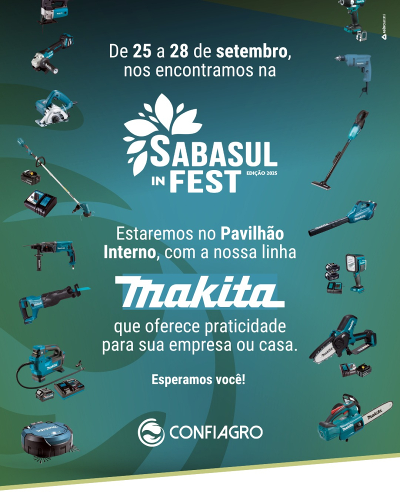 A linha Makita vai estar presente no nosso espaço interno durante a #SabasulInFest, que acontece de 25 a 28 de setembro, no Ginásio Dr. Mário Brum de Santa Bárbara do Sul. ![]()