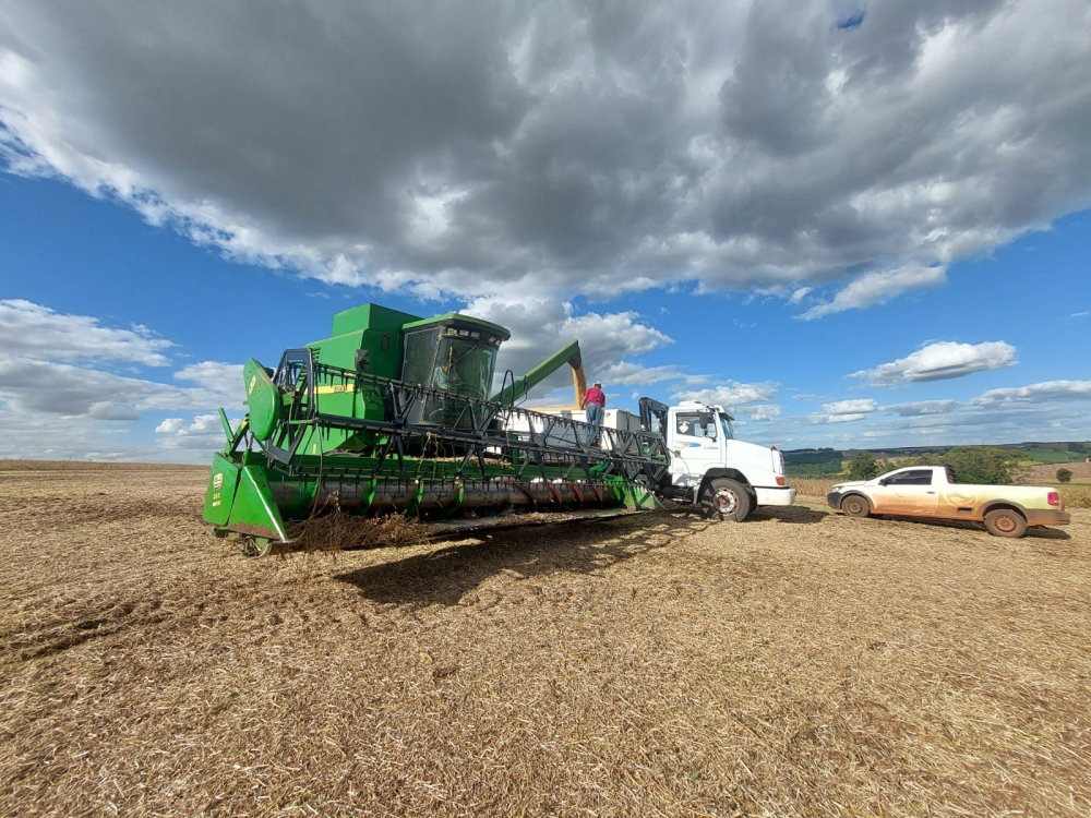 Ritmo acelerado nas lavouras para colher a safra de soja antes da chuva